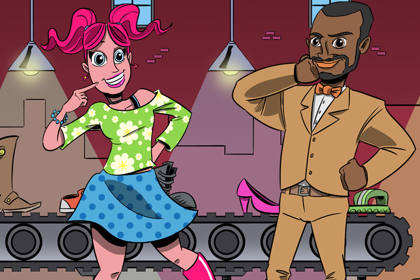 Medewerkers Levi Laars en Patricia Pump komen de groep rondleiden. Vandaag is daar een extra leuke dag voor want de reclame voor het nieuwe model gympen wordt opgenomen. En niemand minder dan Benjamin Bing speelt de hoofdrol! Oliver reageert onverschillig, want hij houdt niet van balsporten.